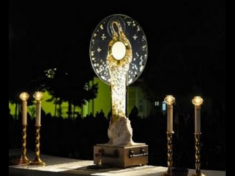 Auf dem Altar sind bei diesem unsichtbaren Wunder Vergangenheit, Gegenwart und Zukunft eins. Die Geschichte ist wie in einem ewigen Punkt verdichtet und die Materie dieser Welt ist in der Eucharistie nur noch eine sinnliche Erscheinung, weil sie „göttliche Materie“ geworden ist; sie ist Gott, der sich für uns hingegeben hat. Und das ist eine Realität, die den innersten Bereich der Materie berührt. Die Transsubstantiation ist eine vollständige, wenngleich unsichtbare Wandlung ihres Wesens. Was irdisch ist, wird himmlisch, das Unsichtbare verbindet sich mit dem Sichtbaren und wandelt es, ohne dass wir es wahrnehmen. Und genau an dieser Stelle erhebt sich unser Glaube auf herrliche Weise. Wir glauben den Worten Jesu, weil wir ihn lieben und weil wir wissen, dass er tut, was er sagt.